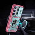 Husă blindată pentru Samsung Galaxy S23, CamShield Slide, verde / roz