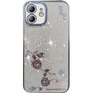 Husă pentru iPhone 12, Glitter Flower, albastru