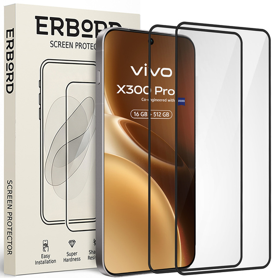 - 2x sticlă temperată ERBORD 3D pentru Vivo X300 Pro, transparentă