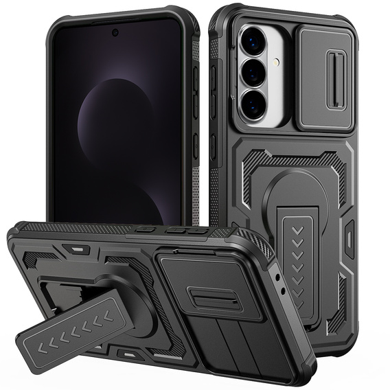 - 1 × Carcasă blindată pentru Samsung Galaxy S26 cu suport, negru