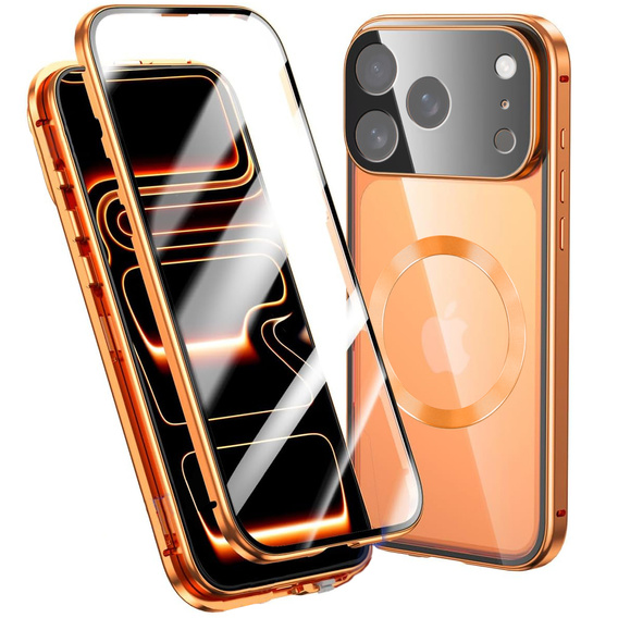 - 1 × Carcasă magnetică dublă din sticlă pentru MagSafe pentru iPhone 17 Pro, portocaliu