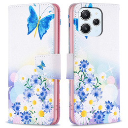 Cu clapetă pentru Xiaomi Redmi 12 4G, Wallet, butterfly & flowers, alb